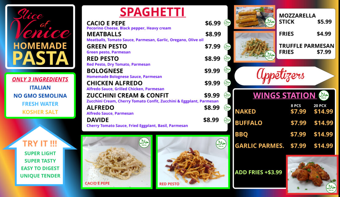 PASTA & APPETIZER Menu - SLICE OF VENICE RESTAURANT AND PIZZERIA
