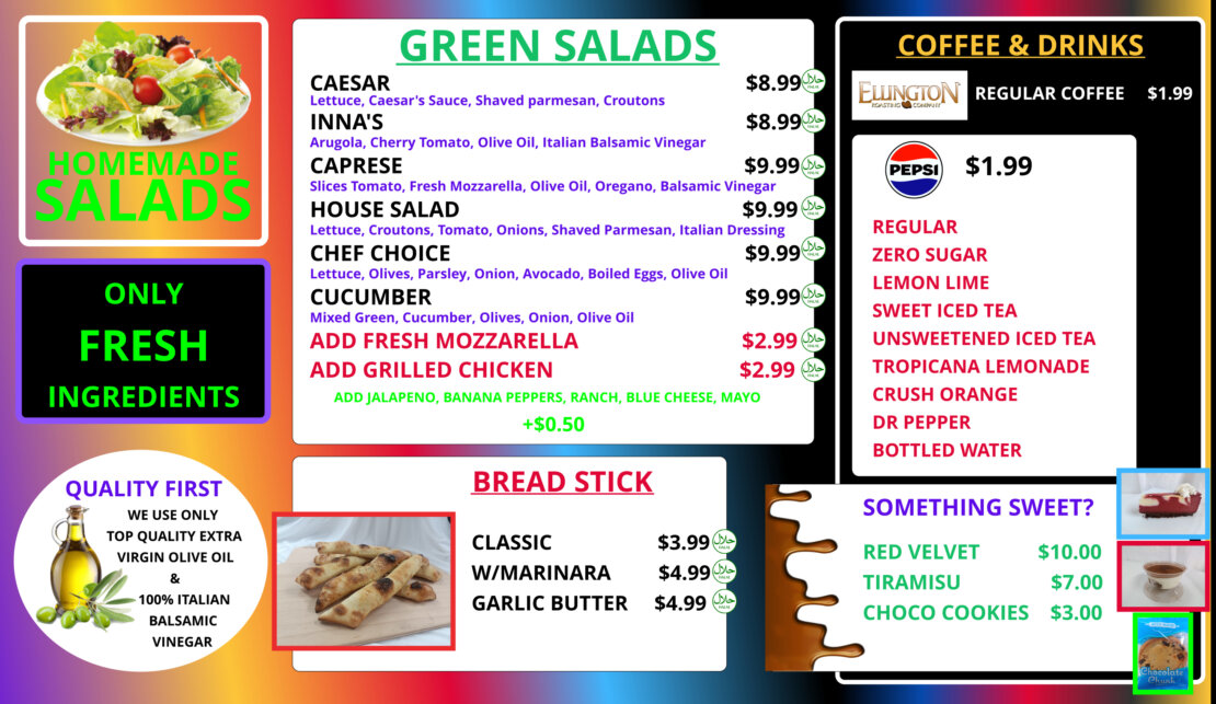 SALADS & CAKE Menu - SLICE OF VENICE RESTAURANT AND PIZZERIA